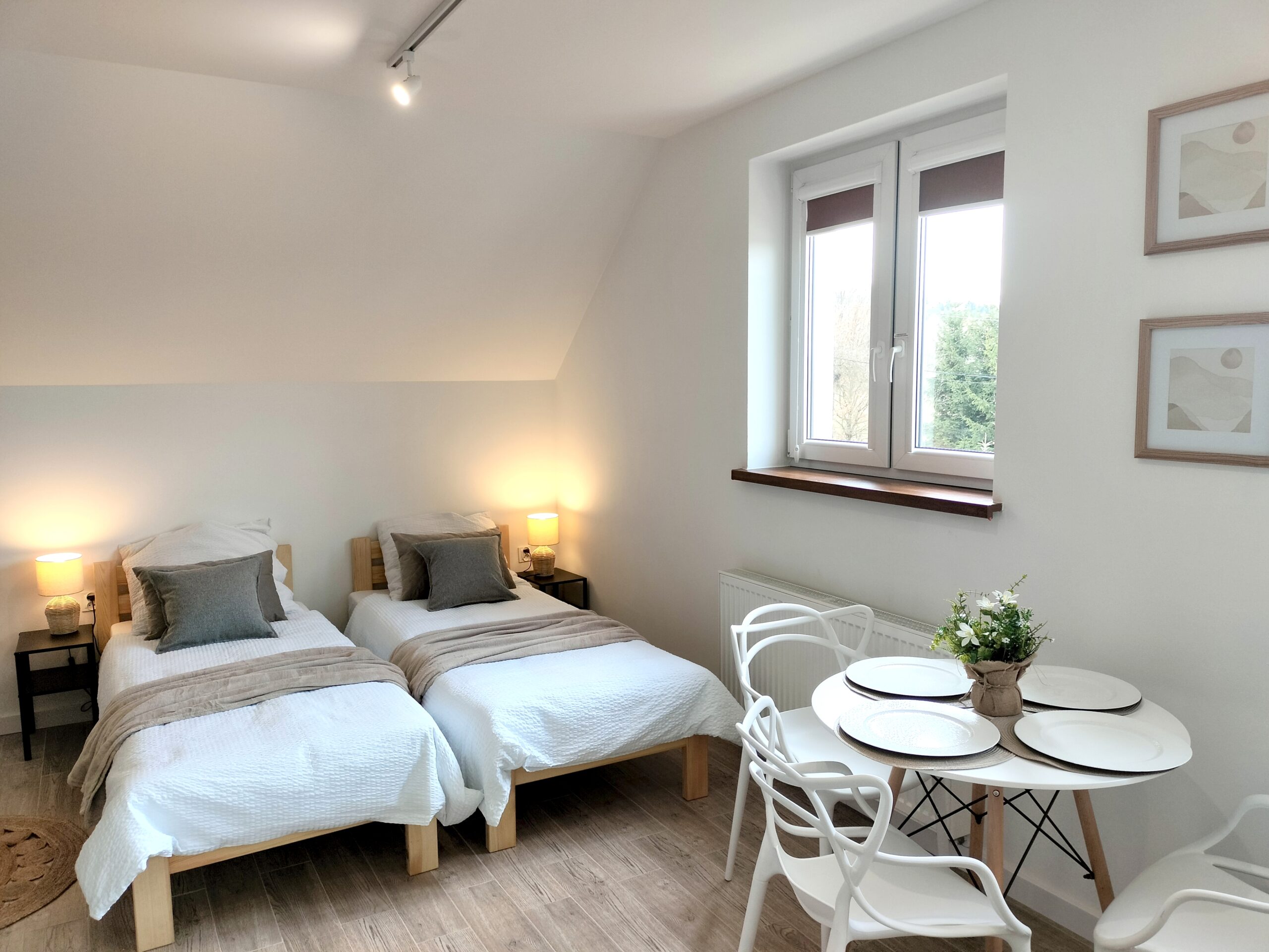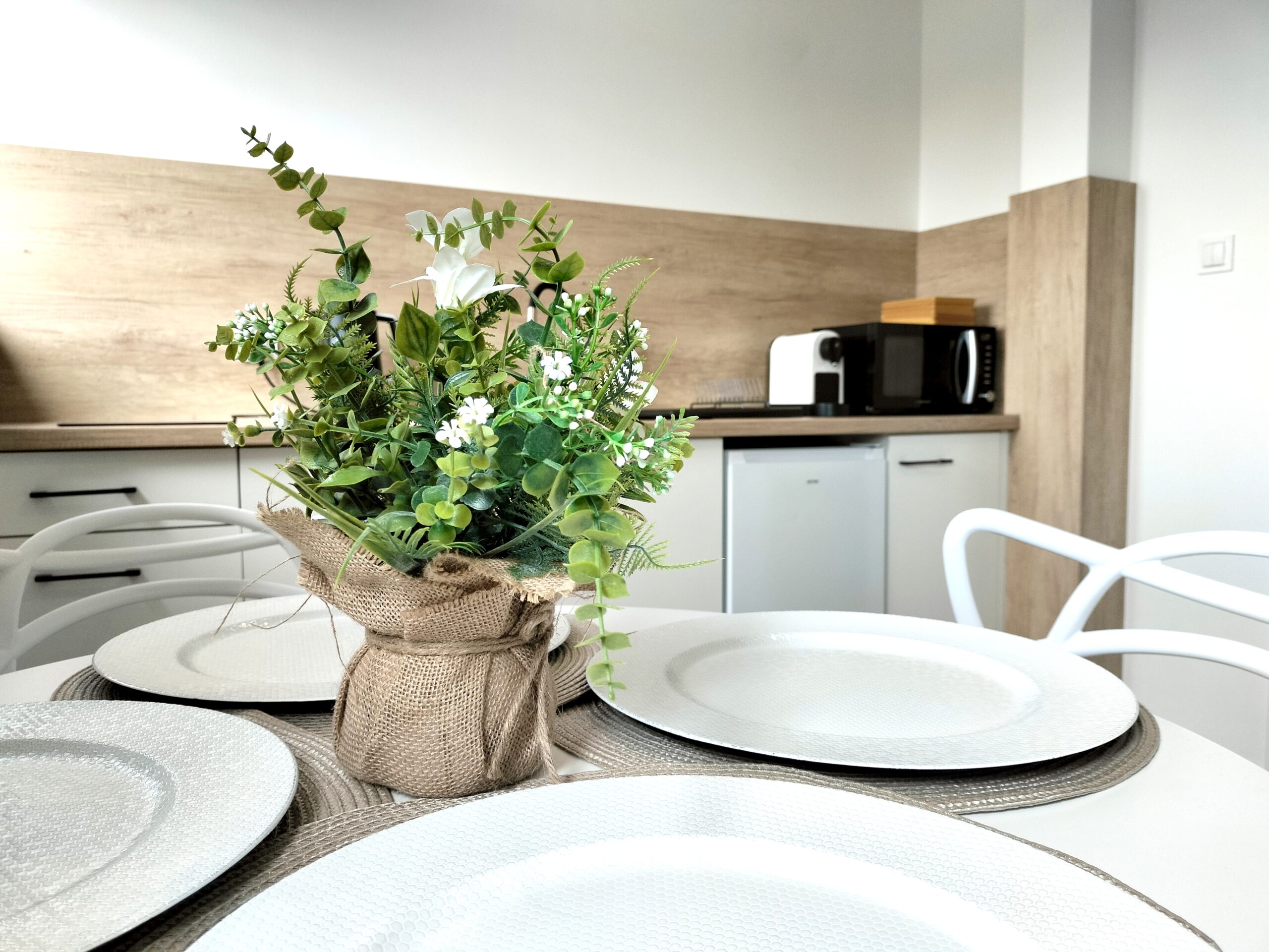 wyboru. Apartament posiada w pełni wyposażony aneks kuchenny, strefę jadalnianą, TV z funkcją Smart oraz łazienkę. W aneksie znajdziecie Państwo